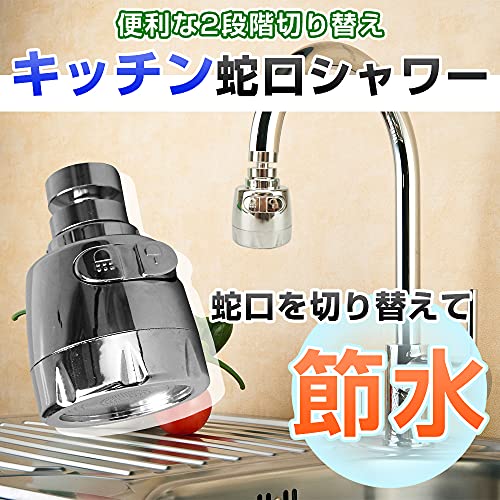 蛇口 シャワーヘッド 節水 首振り 360度可動式 2段階モード ストレート水流 シャワー水流 キッチン 水道