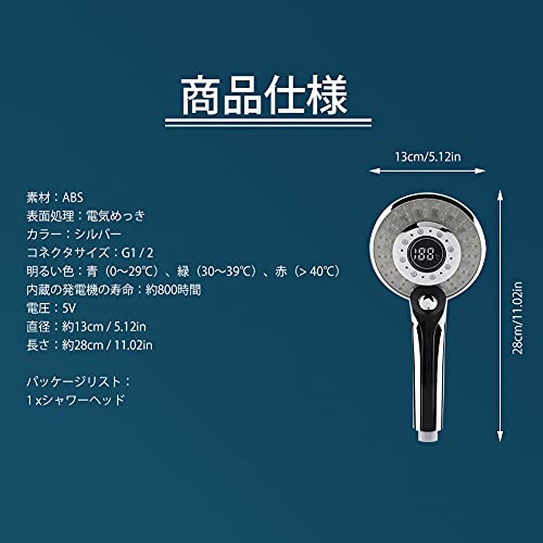 | 商品名 | シャワーヘッド デジタル温度表示 3段階モード 3色LED メッキ ハンドグリップ 節水 シャワー用品 国際汎用基準 |