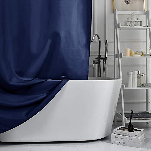 シャワーカーテン 目隠し 防カビ加工 防水 あり リング付き 幅180 丈180cm ネービー