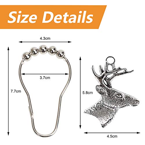 Morobor 12PCS鹿シャワーカーテンフック、レトロなバスルームmクリスマスのテーマの装飾、ステンレス鋼の防錆