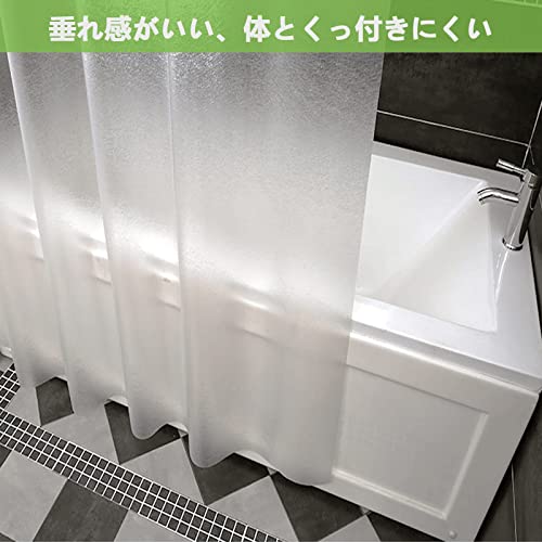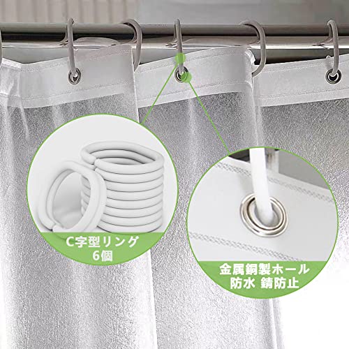 【素材】バスカーテンはEVA厚さ増加素材を使用し、手触り感がソフトで気持ちいいです。防水防湿、垂れ感が良くて、体にくっ付きにくいです。速乾で防水、水滴が形成しやすくて、清潔しやすいです。かびしません。金属銅製ホールは、防水、錆防止。C字型リング付き、丈夫で耐久です。エコ素材で作られたカーテンは無臭で、より安全的です。