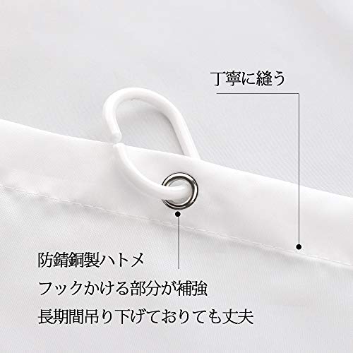 【防水防カビ加工、清潔感あり】防水防カビ処置済みの100%ポリエステル製により、衛生的で清潔感に保つ、ポリエステル素材の特性のため、ビニールのようなにおいがしない、やわらかくて肌触りよい、赤ちゃんにも安心使用でき、バスタイムが快適になるバスカーテンです。