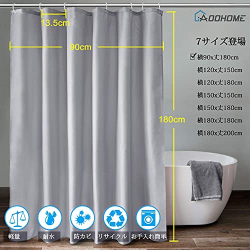 AooHome シャワーカーテン 90x180cm 目隠し 遮像 防カビ 防水 風呂カーテン お風呂用カーテン 軽量 速乾 リング付