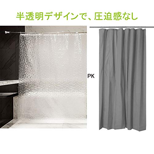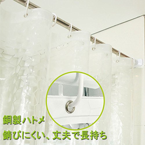 【半透明で3D立体設計】:3D立体設計で、上品でおしゃれです。半透明で浴室内も暗くなることがないので、明るさをキープできるし、圧迫感もありません。また銅製ハトメ付き、錆びにくいし、丈夫で長持ちです。しっかりした生地でシャワーカーテンを長時