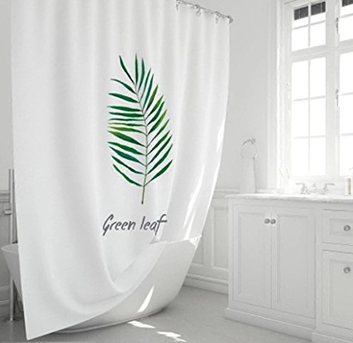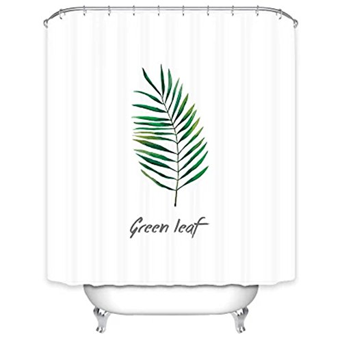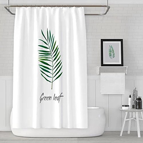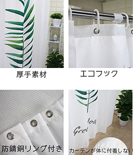 Simple Life 北欧風 リーフ柄 厚手 シャワーカーテン 間仕切り 防水 防カビ 目隠し用 遮光用 バスカーテン フック