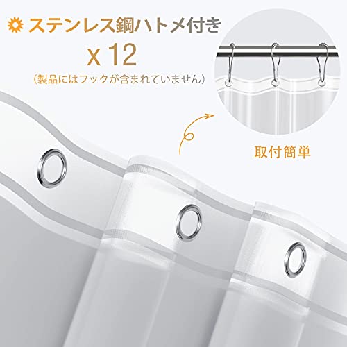 【透明バスカーテン】:このBTTN製の透明シャワーカーテンは環境にやさしい100%PEVA素材を採用された、安心できる無毒なバスカーテンでございます。 サイズ: 130cm幅x 150cm丈 。厚さ:0.2mm。