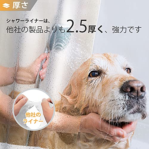 【保温シャワーカーテン】お風呂のとき、このシャワーカーテンを利用しながら、床に水が飛び散らないようにするとともに、バスルームの湿気を外に逃がさない保温効果があります。どんな季節でも楽にシャワータイムを楽しめます。