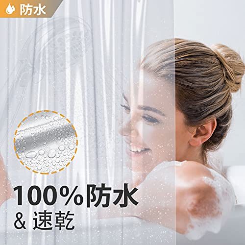【抗菌・防カビ】本透明防水シャワーカーテンは防カビ素材を採用するため、カビが生えにくいです。防水・撥水加工して、汚れたとき簡単に拭き取ることができます。清潔便利!