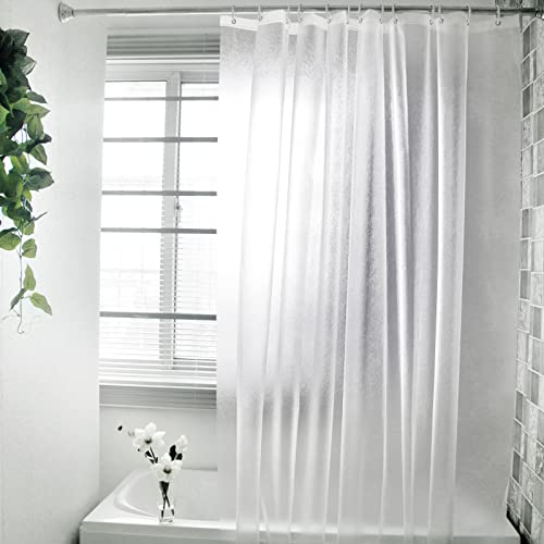 【デザイン、半透明】ビニールカーテン表面には特別加工で目隠しよく、プライバシーを保護されます。シンプルな半透明シャワーカーテンなので、バスルームがいつも明るく見えます。