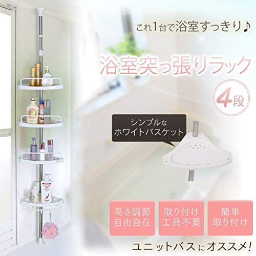 | 商品名 | HRS コーナーラック つっぱり浴室 シャンプー ラック 浴室用ラック 突っ張り バス お風呂場 つっぱり4段 収納 |