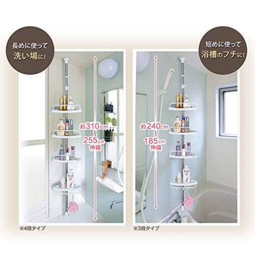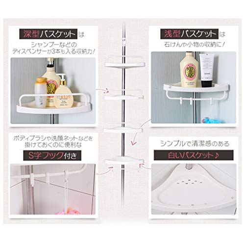 HRS コーナーラック つっぱり浴室 シャンプー ラック 浴室用ラック 突っ張り バス お風呂場 つっぱり4段 収納