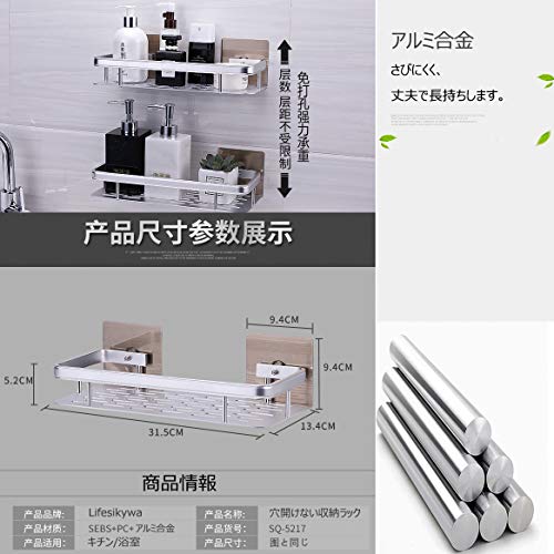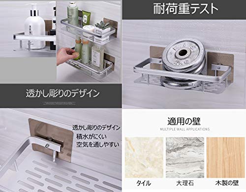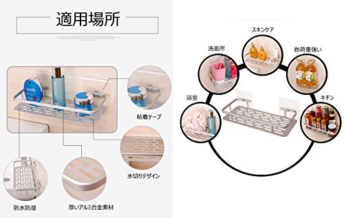 浴室用ラックの全体はアルミニウム合金で作られて、錆に強いなので、濡れた浴室と油の汚れがある台所で使用しても、錆びにくく、元来の光沢を維持します。ルミ合金素材なので、普通より耐久性があって、水で丸洗い可能で、細菌の繁殖は一切ないです。菌の繁殖が気になる方是非!! 穴あけ不要や壁を傷つけず、間借りな人にとって欠かせない物!!