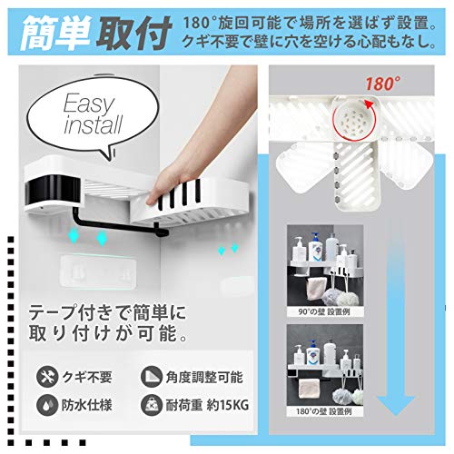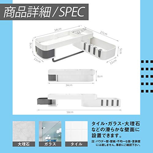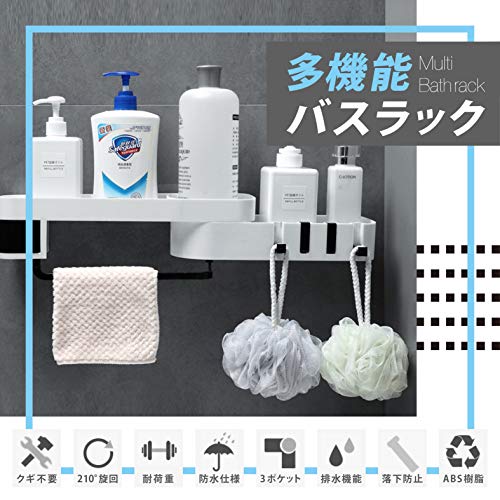 | 商品名 | 浴室ラック 浴室 ラック 収納 人気 強力 水切り 粘着固定 壁掛け シャワーラック 省スペース (タオル掛け付 |