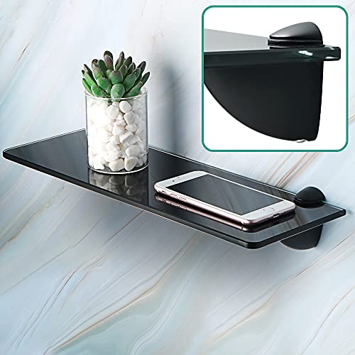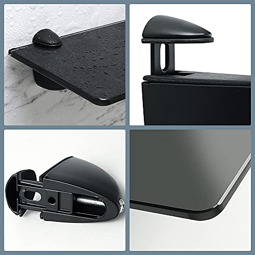 Sayayoガラスバスルームラック ガラスシェルフ ガラス棚 強化ガラスと亜鉛合金 ブラック JGBL007T-B