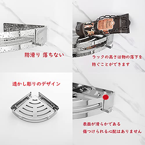 三角ラック コーナーラック シャワーラック 浴室用ラック 304ステンレス製 1段 三角 壁掛け式 粘着性 穴あけ不