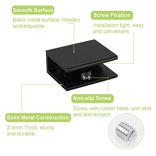 UFURMATEガラスクランプ、4個の正方形ガラスクランプ黒アルミニウム合金ガラス棚ブラケット調整可能な長方形