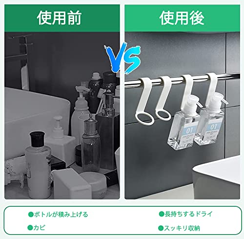 【省スペース】キャビネットのドアなどに掛けることができますので、ボトルが積み上げたり、落ちったり心配する必要はありません。シンク周りをスッキリと収納でき、スペースを有効活用できます。また、ボトル底のカビを防ぐことができ、掃除も楽になります。