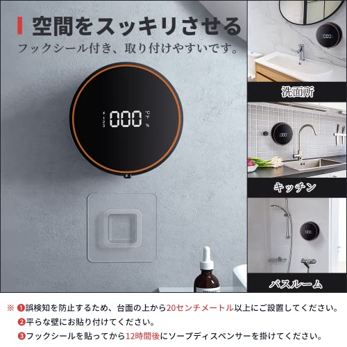 ソープディスペンサー KAWEINA 泡 自動 3段階排出量 2000mAh充電式 300ml容量 室温と電量表示 壁掛け 黒 W1-Black