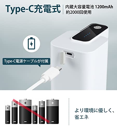 | 商品名 | FERRISA ソープディスペンサー 自動 泡 ノータッチ 泡吐出量4段階調節 Type C充電式 ハンドソープ センサー IPX4防 |