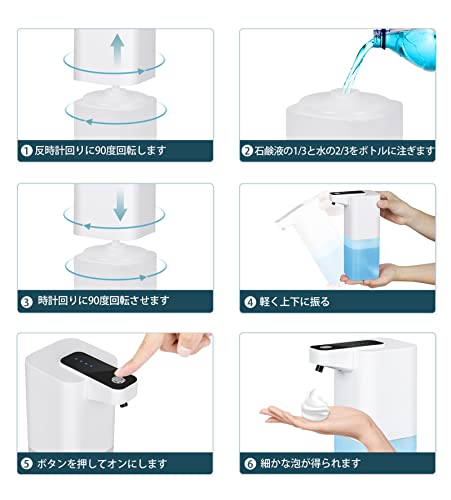 ?【感染予防、細菌抑制】石鹸に直接に触ったり石鹸ポンプを押したりする必要はありません。コロナウイルスの感染を効果的に避けるために、ワンボタンスイッチはより敏感に自動的に手を感知し発泡します。この自動泡沫ソープディスペンサーは、あなたの健康のために綺麗な洗濯