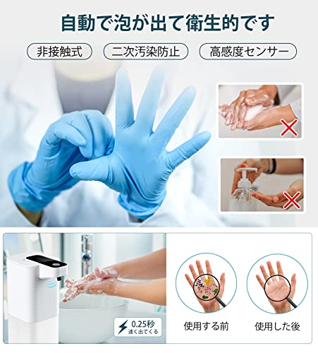 ?【非接触型ディスペンサー 泡】FERRISA自動泡ソープディスペンサー、精密な赤外線センサーが内臓します。自動でタッチレス、0.25秒以内に、自動的にふわふわの泡が出てきます。 石鹸と水をボトルに1 : 3の比率で注ぐだけで、細かな泡が得られます。自動でより便利になるだけではなく、細菌抑制には役に立ちます。注意: これは液体ソープディスペンサーではなく、自動泡ソープディスペンサーです!