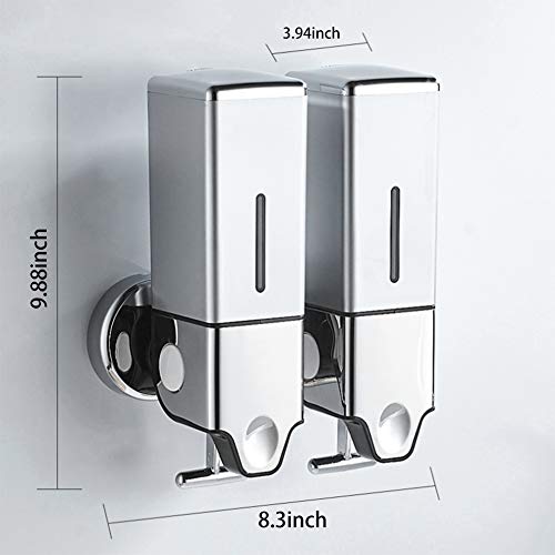 Mungowu 1Mlデュアルボトル手洗い液体石鹸ディスペンサー、ウォールマウントシャンプーシャワージェルコンテ