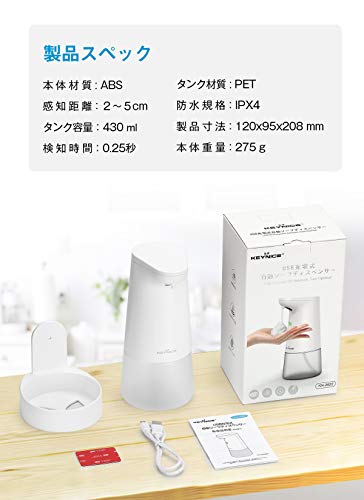 | 商品名 | KEYNICE ソープディスペンサー usb充電式 自動 オートディスペンサー 泡 ノータッチ式 吐出量2段階調整 大容量430 |