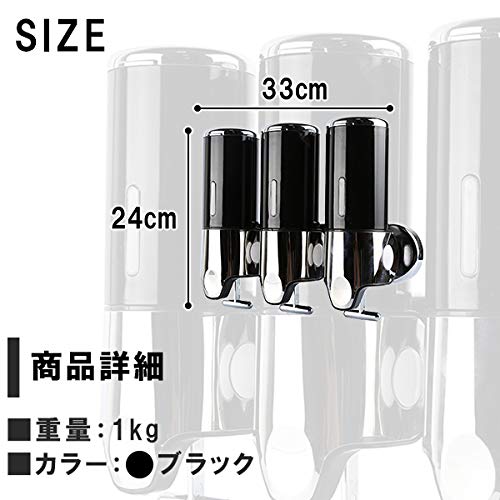 | 商品名 | Island chief ソープディスペンサー 壁掛け シャンプー ボディーソープ 詰め替え 3連 (ブラック) |