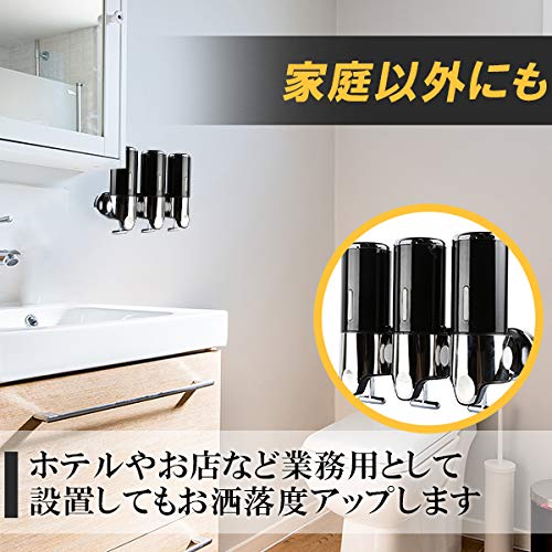 Island chief ソープディスペンサー 壁掛け シャンプー ボディーソープ 詰め替え 3連 (ブラック)