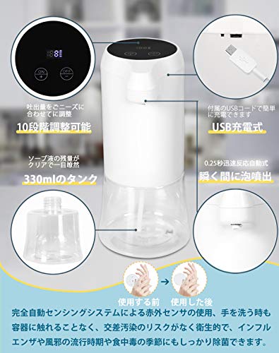 ソープディスペンサー自動 10段階調整可能 泡ハンドソープ スプレーボトル贈る 充電式 usb 残量確認可能 多種