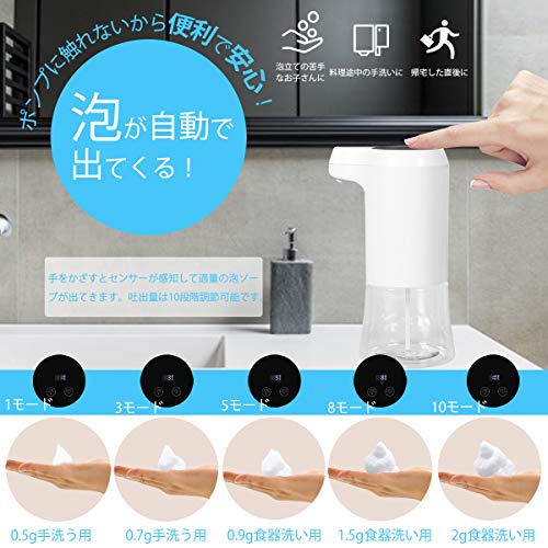 【センサー式・ノータッチ】ソープディスペンサーは手をかざすだけで、出口から1~4cmの距離に手の動きを検出し、0.25秒以内にふわふわした泡を得る。程よい量のソープが自動で出てくるので、本体を触る必要なく、より衛生的に手洗いができる。とても使い安いです。外出先から帰宅時や調理の前後、食事前などこまめに手を洗うことを習慣つけましょう!また、20mlスプレーボトルをプレゼントしますので、旅行や出張ではもちろん、ジムやプールにも持ち運び便利、外出時の除菌用液体などを入れるのにもオススメです。