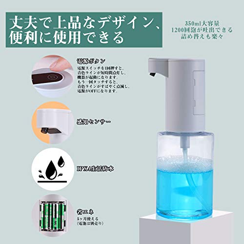 【大容量&半透明ボトル】業界で一番大容量350MLなので約1200回使用でき、次の詰め替えは2-3ヶ月まで長持ちします。面倒な頻繁に洗剤を補充する必要がありません。さらに透明なタンクで、簡単に残量を確認できます。風邪やインフルエンザなどをしっかり予防するためにも、自動ディスペンサーを使って、最適な手指衛生が実現します。