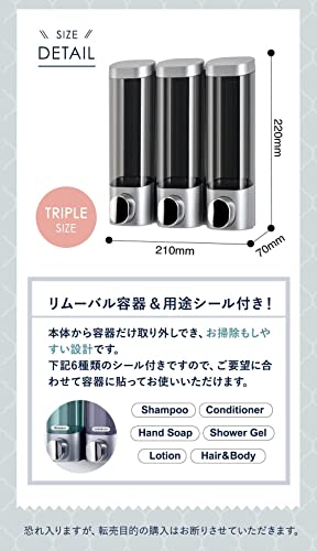 PREMM マグネット で簡単取り付け 壁掛け シャンプーディスペンサー (トリプル 300ml x 3, ホワイト&グレー)