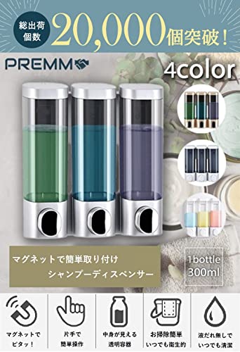 | 商品名 | PREMM マグネット で簡単取り付け 壁掛け シャンプーディスペンサー (トリプル 300ml x 3, ホワイト&グレー) |