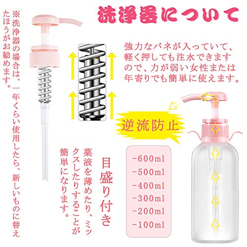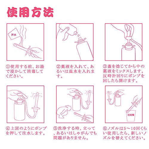 MinYn 8点セット 洗浄器 五つのノズル 収納袋付き 蓋あり 12穴 PP製 ピンク 600ml
