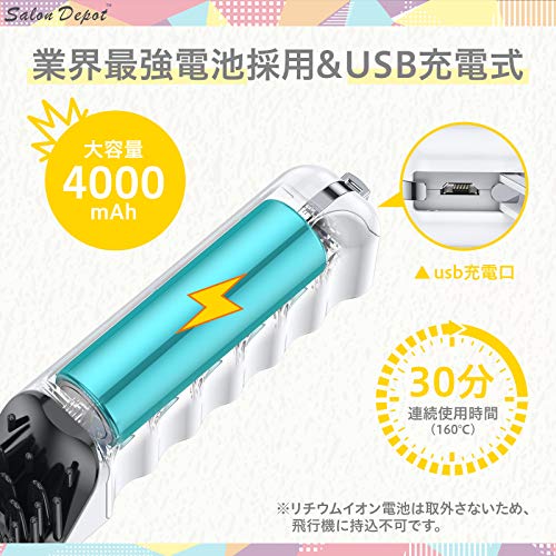 ストレートヒートブラシ salon depot ヘアアイロン コードレス ブラシ型 usb充電式 2way カール ミニ 3段階温度調整