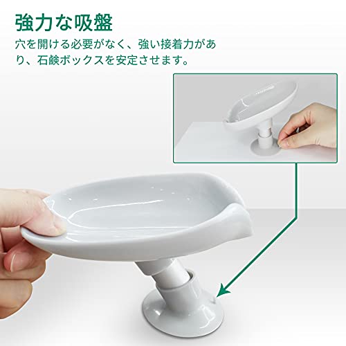 【強力な吸盤】この石鹸ホルダーの底に取り外し可能なシリコン吸盤が付いています。 穴を開ける必要がなく、強い接着力があり、石鹸ボックスを安定させます。