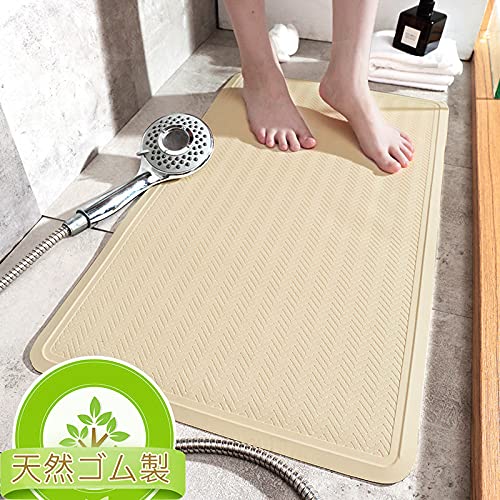 浴槽すべり止めマット お風呂マット 転倒防止 痛くない 吸盤付き 40×70cm 天然ゴム製 (浅 ベージュ)