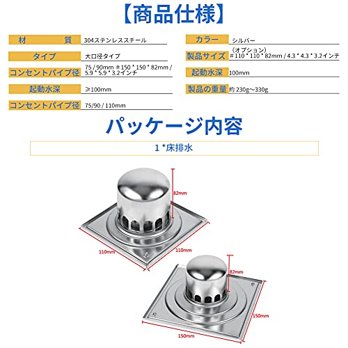【人間工学】着脱が簡単で組み立ても簡単です。適用可能な広い配管深さと直径範囲で、排水プレートは1111cmと1515cmですので、床タイルに完璧にフィットします。