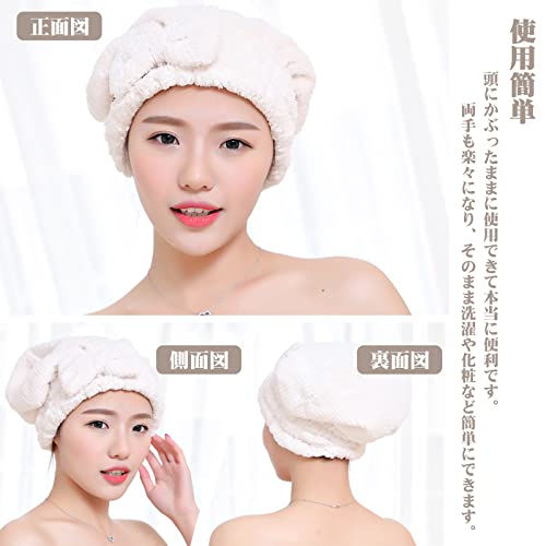 【超吸水タオルキャップ】マイクロファイバー素材を使用して、吸水性が強力で、吸水速度が速くて、吸水量も多いです。モコモコで肌触りがよく、速乾性が抜群で洗濯後早く乾きます。