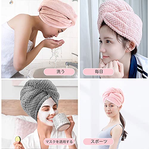 ? 吸水性と速乾性抜群:ヘアタオルは高品質なマイクロファイバー素材が採用されますが、ぐんぐん吸水でき、サッと乾かれます。ヘアキャップの吸水量が従来タオルにより5倍ですが, 仕上げのドライヤー時間を大幅に短縮でき。そのため、より速く、より効率的に乾かすことができ、速乾性に優れているため、より