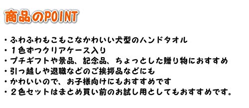 もこもこ素材のかわいいわんちゃん型ハンカチタオル。1色ずつクリアケース入りなので、ちょっとした贈り物におすすめです。またたくさんお求めになる前のお試し用としてもおすすめです。