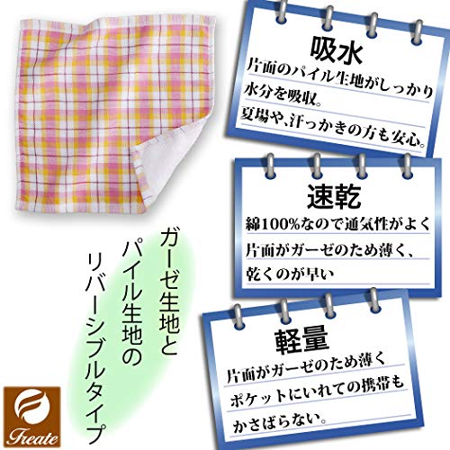 おしゃれなチェック柄のガーゼ生地とパイル生地を使用した、リバーシブルタイプの綿100%のガーゼハンカチです。