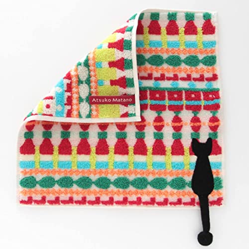 アツコマタノ タオルハンカチ (アイボリー) <ドリンクコーナー> (綿100%) 婦人 ネコ ハンドタオル 25cm 18100