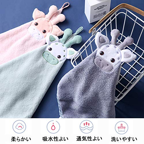 Tibemi 3枚セット お手拭きタオル ループ付き 可愛い鹿ハンドタオル 速乾タオル ふわふわ吸水性 家庭用 キッチ