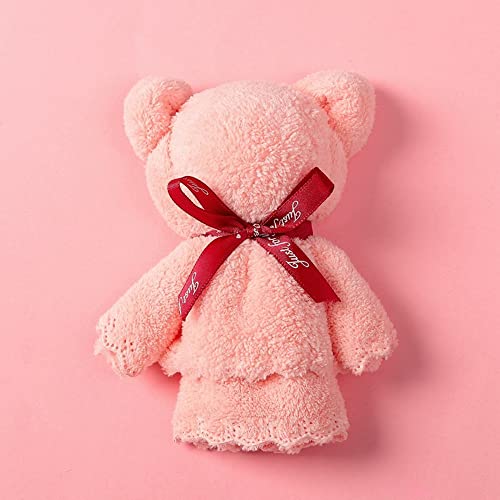 かわいいくまの形のタオルハンカチギフトです。小熊サイズ:1217 cm、展開サイズ:3575 cm。カラー:ピンク