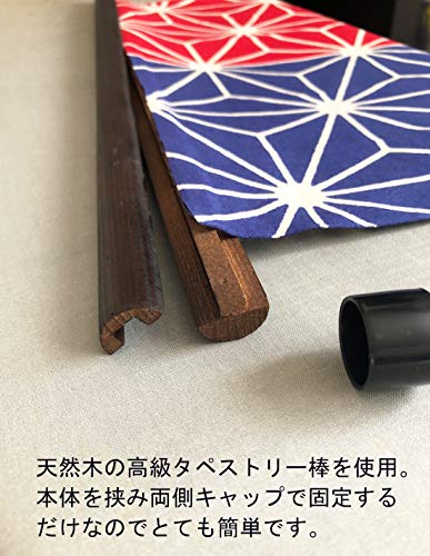天然木の高級タペストリー棒をセットにしてますので直ぐに飾ってお楽しみいただけます。組付けも手ぬぐい本体を上下挟み込むだけなのでとても簡単です。