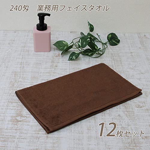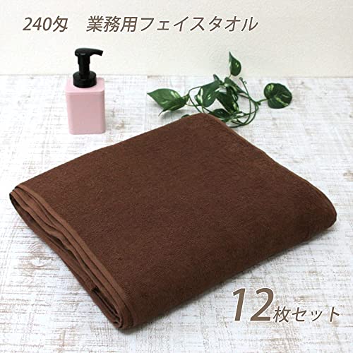 240匁 業務用 フェイスタオル 12枚セット (ブラウン)