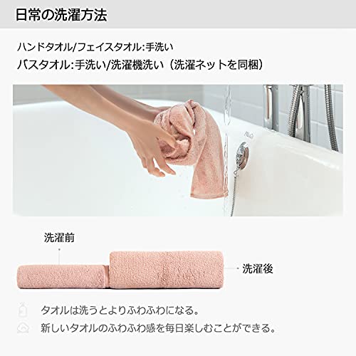 【日常の使用厚さ】タオルは厚くても薄くても使いづらいです。使用感と収納の2面から「日常で一番使いやすい厚み」を実現しました。素材:綿100%、フェイスタオル: 約110g、34cm74cm