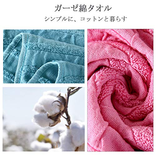 【タオル仕様】素材:綿100%/ガーゼ(綿紗)織り&無撚糸、フェイスタオル&バスタオルの2つのサイズをご用意。フェイスタオルサイズ:約34×75cm 、重さ:1枚あたり 約65g 、5枚入/1枚入。バスタオルサイズ:約70x140cm、重さ:215g、1枚入。